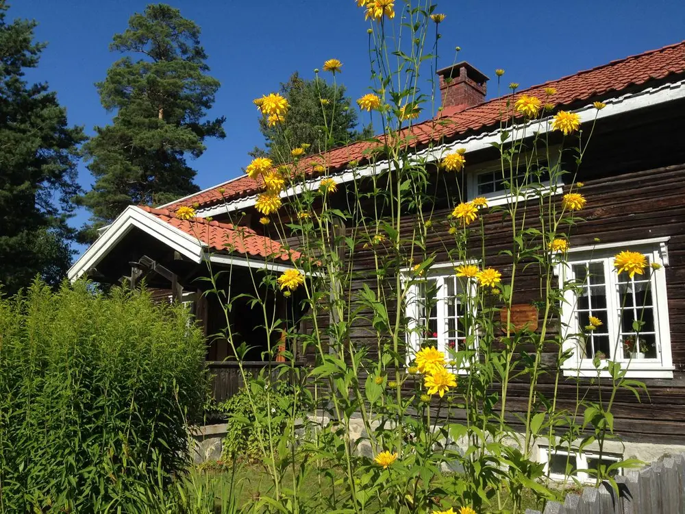 Vakre sommerblomster rundt Storbråtenhuset.